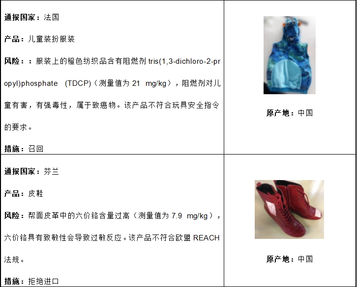 2018年10月歐盟非食品快速預(yù)警系統(tǒng)通報(bào)